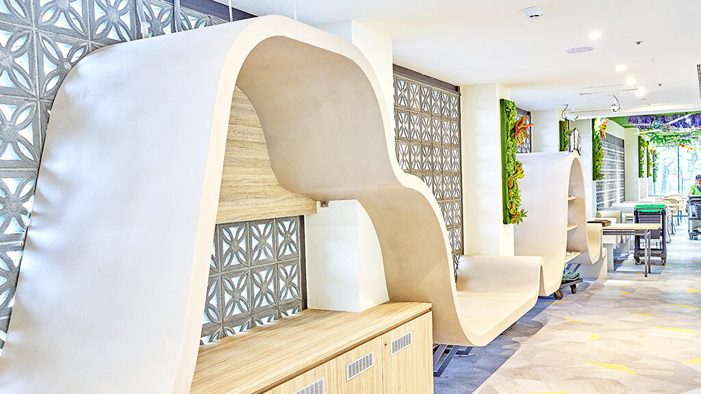本次服務區之增改修建,以「花饗古坑希望旅程」作為規劃主題,將繽紛花卉的色彩及線條融入空間規劃設計,並延伸花語的精神,打造美麗時尚的女性主題空間;結合溫柔守護的弱勢關懷,讓幸福樂章永不停歇、讓旅程一直懷抱夢想與希望。