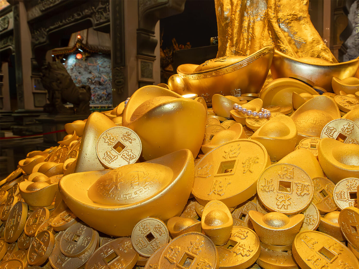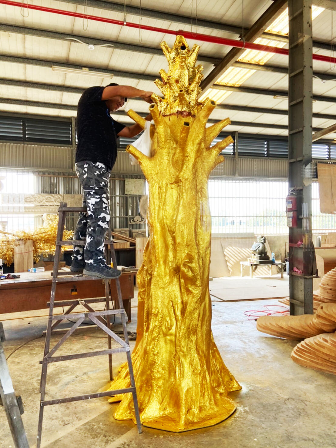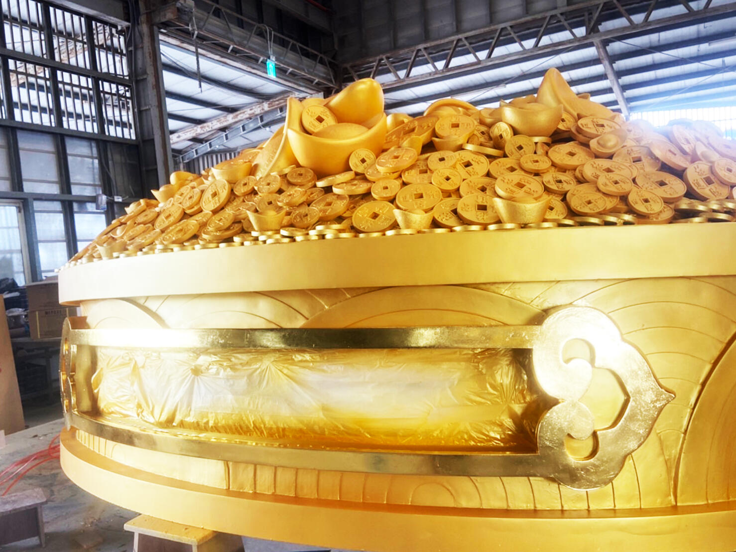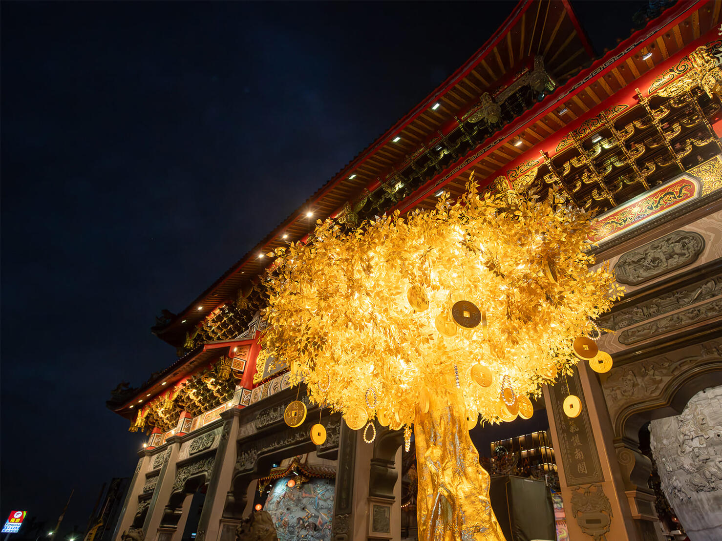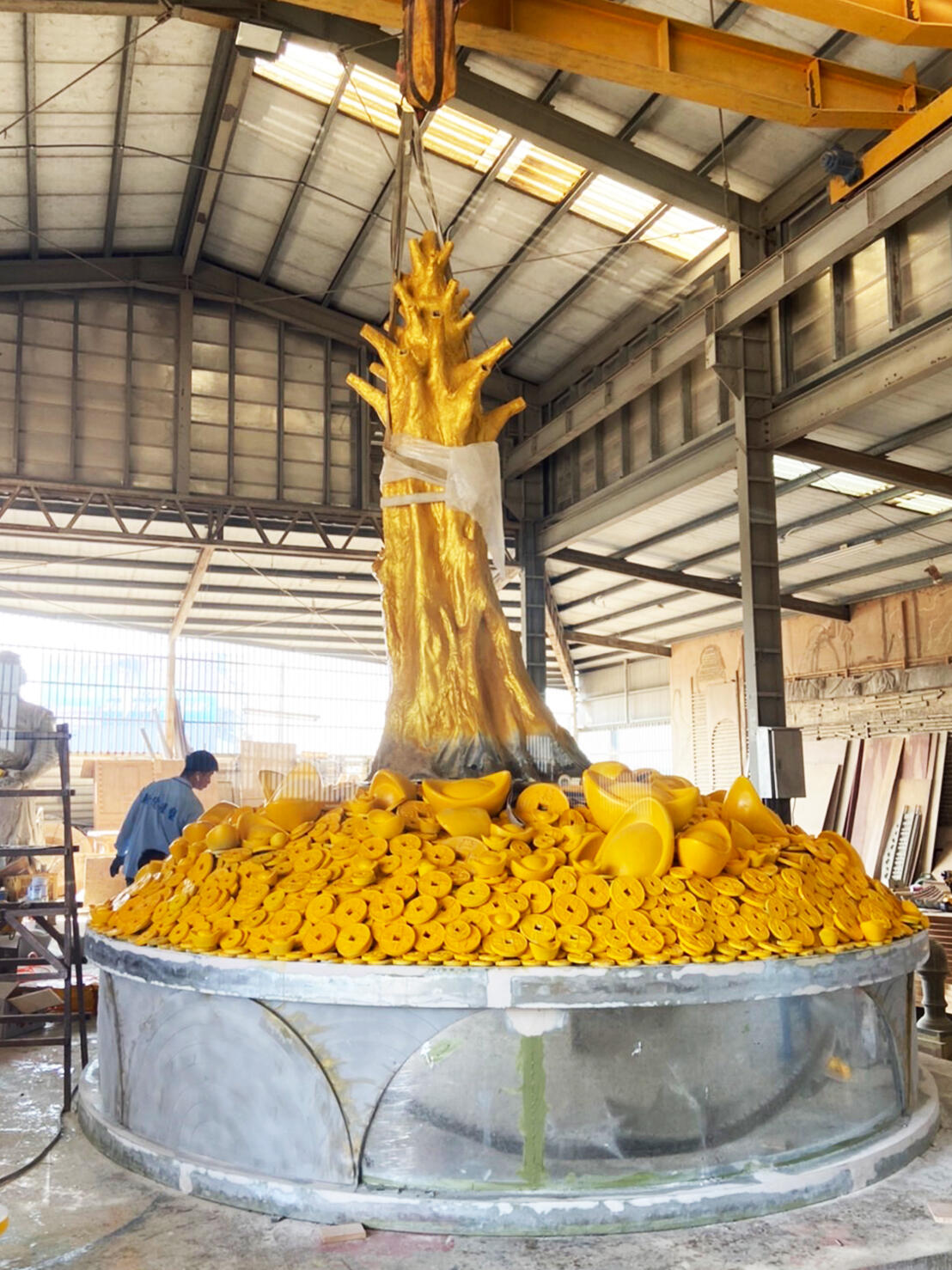 國內財神祖廟的雲林縣北港武德宮,2024年新春翰億與武德宮合作一顆高達4.5公尺的「財神寶樹」藝術工程,樹身金光閃閃,不僅金枝玉葉,土方全是金銀財寶,全使用FRP玻璃纖維材質製作出許多大小銅錢及元寶,其中樹身及元寶表面按上銅箔顯得更加貴氣,吸引大批遊客爭相和黃金發財樹合照,為自己添添財氣,夜間搭配LED燈光效果,金光竄天,宛若財神下凡,為新的一年增添不少財運喜氣。