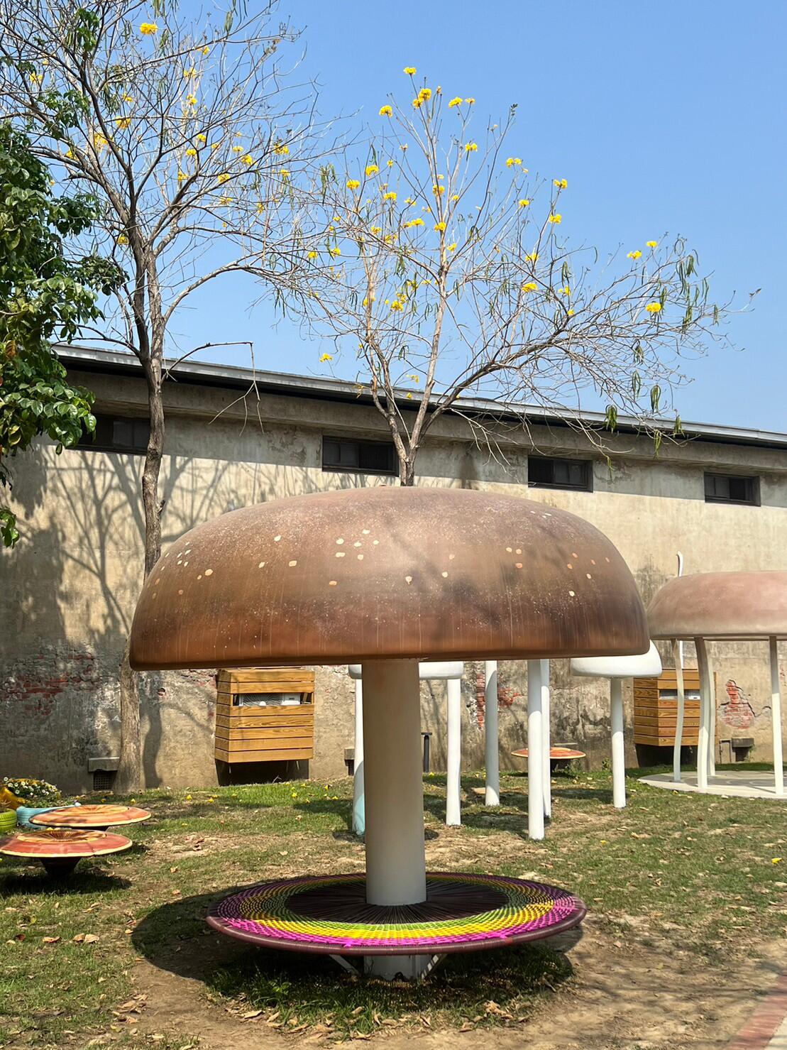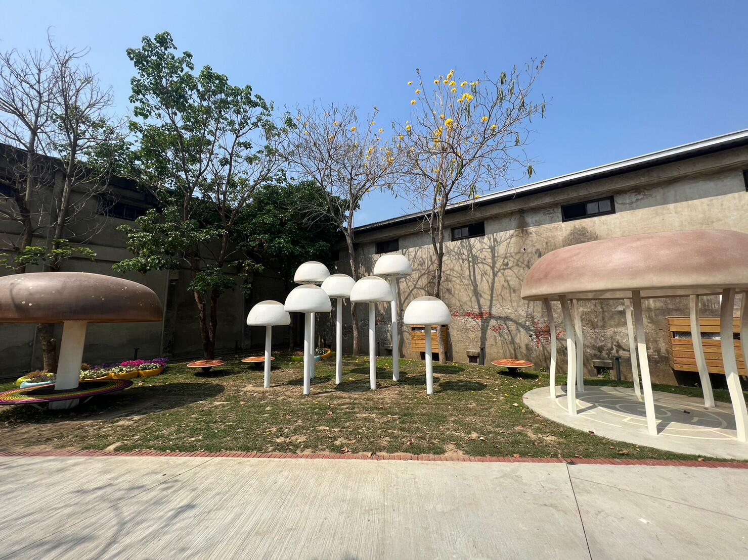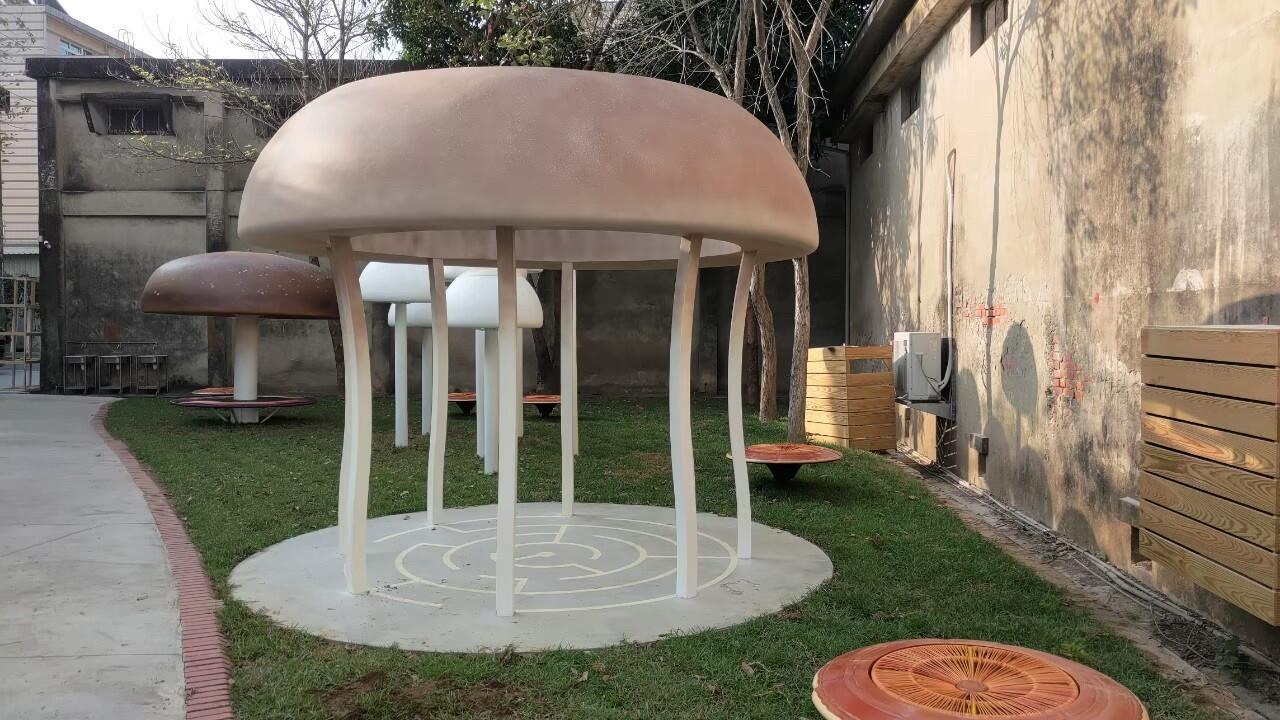 位於阿里山下的中埔鄉,是台灣菇類重要產地之一,為推廣中埔菇類農特產,加深遊客記憶點,農會巧思創作幻彩精靈菇、魔鏡香菇、迷宮杏鮑菇及靈芝坐椅的裝置藝術。